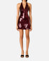 Made for the spotlight, the Rodeo Dress is pure after-dark energy. With a deep V-neckline, flirty front tie, and an open halter back, the fitted silhouette hugs close through the body before finishing in a clean straight hem. Fully embellished in all-over sequins, it brings shimmer and shine from every angle. Just zip it up in the back and you're party-ready.