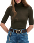 A closet staple that's effortlessly chic. The Amelia Crewneck Top is a classic with a slim fit and elbow-length sleeves. Cut from 100% merino wool jersey that's super soft for a timelessly chic look and available in a deep green perfect for fall.