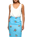 A classic scoop-neck tank top features a relaxed drape and soft texture, perfect for warm days and easy styling. Paired with a high-waisted, Pencil skirt adorned with delicate rose motifs, this look captures a soft femininity and nostalgic charm.