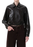 The Essie Jacket is a cropped silhouette crafted from buttery recycled leather. Finished in a deep, dark chocolate brown, it features clean lines, subtle shaping, and a gathered hem for a softly structured look. Style it with relaxed denim or tailored trousers for a refined, modern edge.