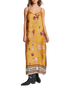 Maxi length camisole dress with V-neck and spaghetti straps. Side slits. Dress it up or down for day or night. Easy to wear, feminine look.