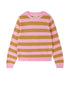 Lightweight cashmere stripe crew neck in candy and mustard.